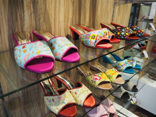 鵬志堂の近くにある靴屋さん。看板も店内もカラフルで、靴もみんなかわいい!ビーズを使った小物が特徴のプラナカン文化のデザインで種類も豊富。ウィンドウショッピングでも楽しめます。