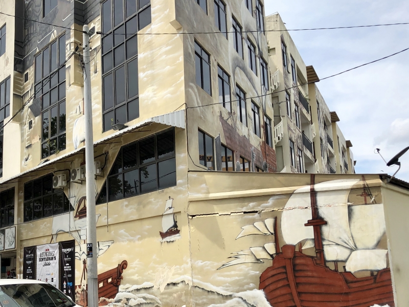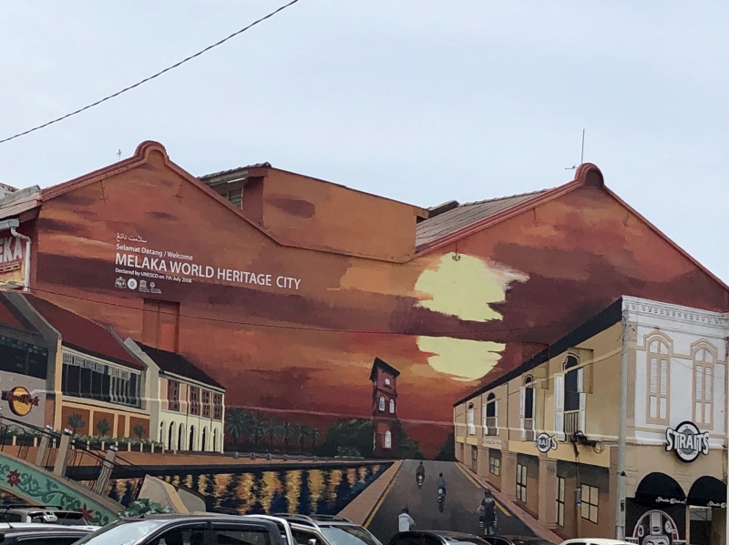 しばらく歩いていると、マラッカ海峡に沈む夕陽のウォールアートも。