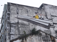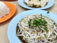写真:bluemoon イポーの名物壁画「紙ひこうき(Paper Plane)」 |  写真:bluemoon 絶品もやし料理で有名な「老黄(Lou Wong)」外観 |  写真:bluemoon もやし料理 2人前 RM6.00(約210円)、チキン RM13.00(約455円)、油飯 RM2.50(約88円) |