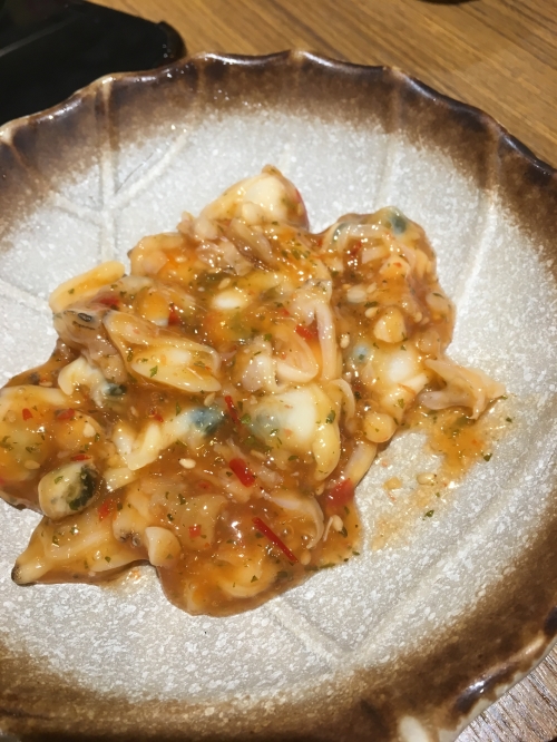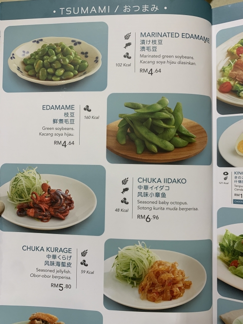ちなみに写真上は中華イイダコRM4.64(約118円)です。日本のお寿司屋さんでは珍しいですが、マレーシア人に非常に人気の商品ですので、是非試してみてください。甘い味付けです。