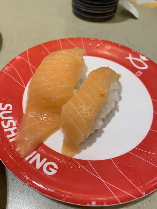 写真上は期間限定の明太子炙り焼きです。この明太子炙り焼きは、明太子の味よりも、マヨネーズの味が勝っていました。Sushi Kingには期間限定商品も多くあります。筆者が訪れた時の期間限定商品は、様々な明太子の商品とイワシの商品でした。