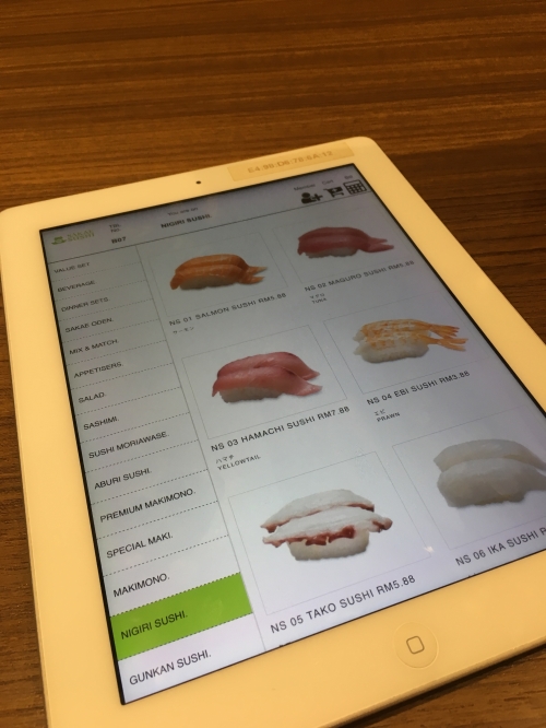 こちらも店舗と時間帯によりますが、レーンに廻っているお寿司の数は少ない印象です。また、商品も品切れが数多くありました。注文はタッチパネルからできます。Sakae Sushiもプロモーションなど定期的に行っているので、Facebookページをチェックしてみてください。