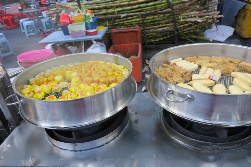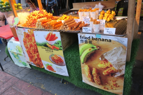 座って食べられる食堂風のお店もありますが、気軽に食べ歩きできる揚げ物や点心、フルーツなども豊富です。