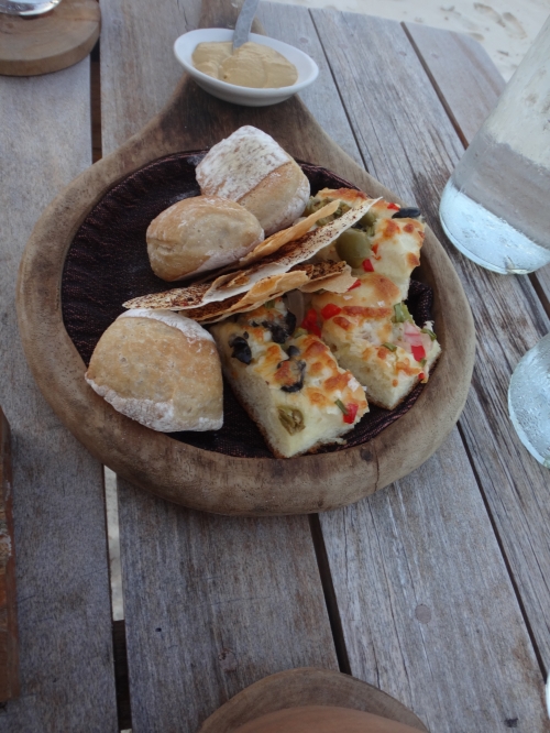 焼きたてのパンも毎回サーブされます。インサイドの席は、天井が高く開放感があります。