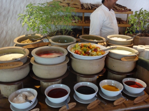 生ハム専用の冷蔵庫があり、朝は高品質な生ハムが食べ放題です。ヨーグルトも種類がいっぱい。