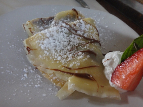 フルーツを一種類頼んだはずが、あれもこれもとプレート山盛りに乗せてくれます。クレープも焼きたてを席に運んでくれます。