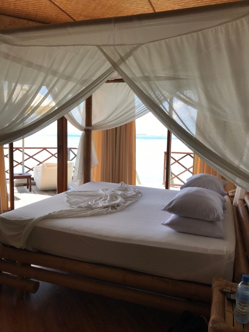 誰もが憧れる水上ヴィラが、リーズナブルに泊まれるとあって大人気!水上ヴィラは1棟ずつ独立しているので、プライベートが保たれています。水上ヴィラへ行く桟橋には水が入った瓶があるので、足についた砂を洗い流してから部屋に入りましょう。