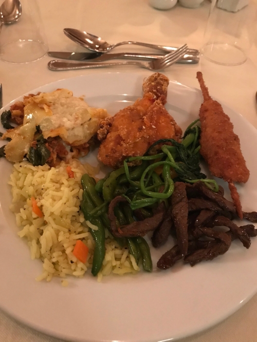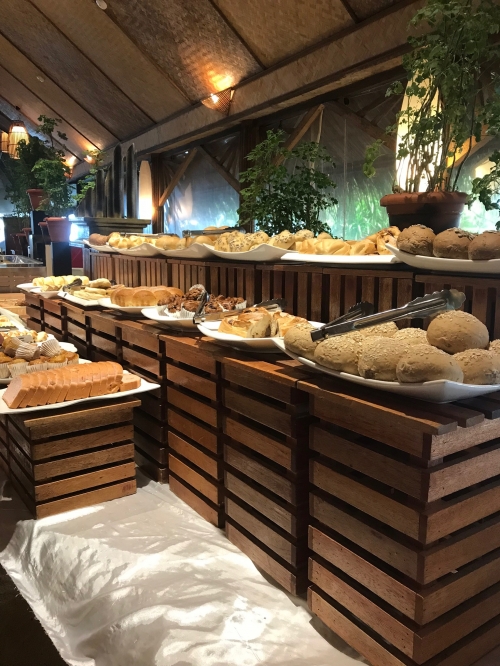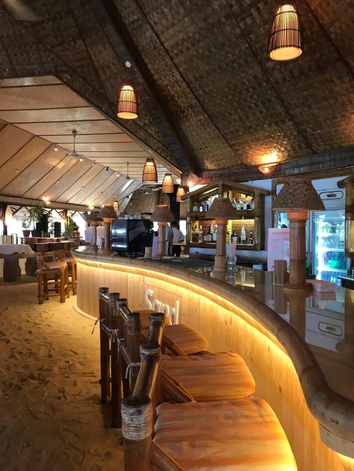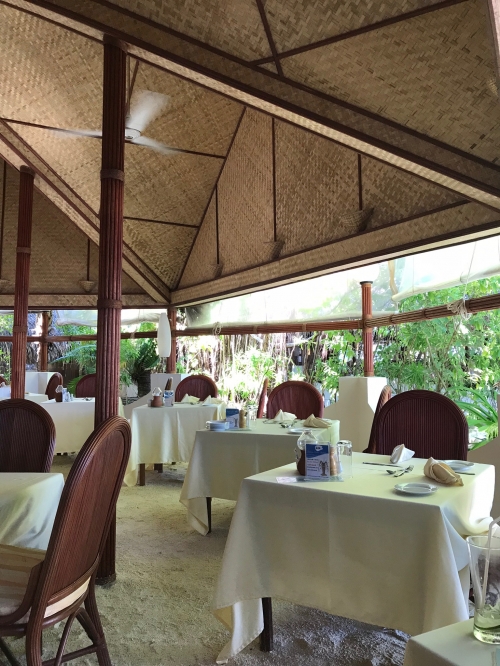 島には、バーが併設されたレストランがあります。食事は全てそこで頂きます。朝食、昼食、夕食は全てビュッフェになります。全部の種類を食べるのは無理なぐらいメニューが豊富です。朝は好みの卵料理を目の前で焼いてくれるんです。またフルーツも目の前で好きな分だけカットしてくれるので、常に新鮮なフルーツが頂けます。