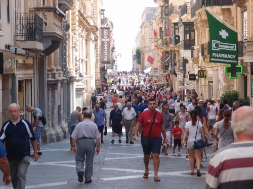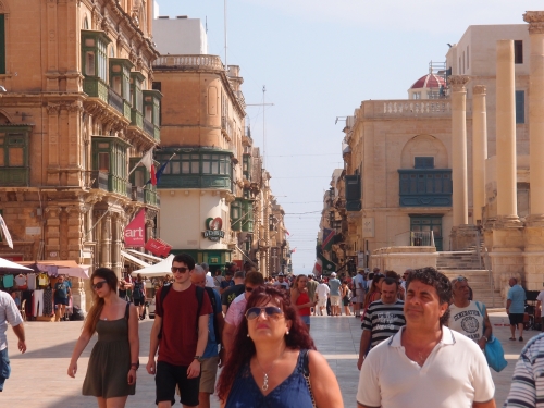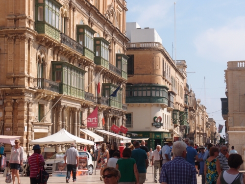 ヴァレッタ旧市街のリパブリック通りは、ヴァレッタの街のメインストリートです。建物は当時のままですが、カフェやレストランが連なり、多くの人で賑わっています。