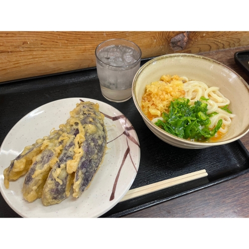 「中村うどん」のうどんは、少し細めの麺が特徴。サイドメニューには天ぷらやおでんがあり、一押しは天ぷらです。薄衣でサックサクの天ぷらは、うどんとの相性もぴったり!価格もえび天以外は、110円とリーズナブルなので是非セットで頼んでみてください。