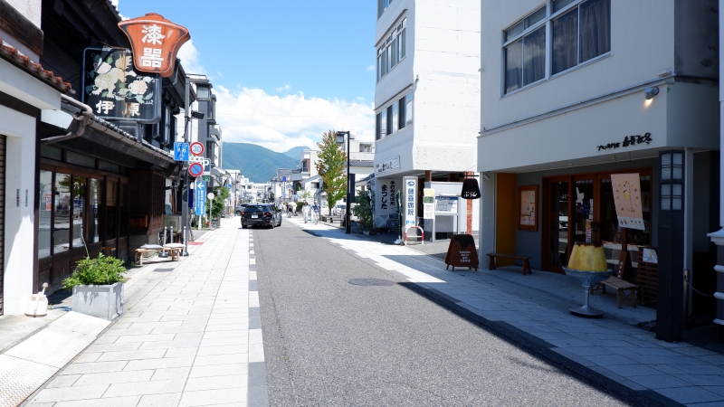 ナワテ通りとあわせて立ち寄りたいのが、「中町通り」。酒造業や呉服問屋などが立ち並ぶ風情ある通りで、白いなまこ壁の土蔵をリノベーションしたカフェやお土産屋があり、ひと休みできるほか、松本市内の観光の思い出にピッタリなお土産スイーツや雑貨を購入できます。