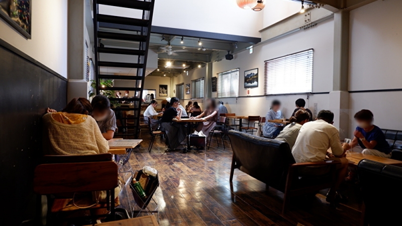 元々は漬物メーカーの工場だったこともあり、店内は明るくて開放感たっぷり。落ち着いた雰囲気の中で有意義な時間を過ごせます。