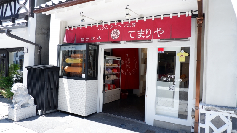 「てまりや」は、信州産の米粉や玄米粉を使ったバウムクーヘンを販売する専門店。一つひとつ丁寧に焼き上げており、観光客はもちろん、地元の方からも人気を集めています。