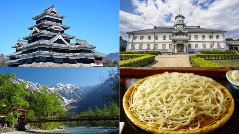 信州そばでお腹が満たされたら、早速観光を始めましょう。おすすめスポットは松本市内のいずれも人気名所である「松本城」、「旧開智学校」、「なわて通り」、「四柱神社」の4カ所。それぞれのスポット間はさほど離れていないので、徒歩での移動も可能です。