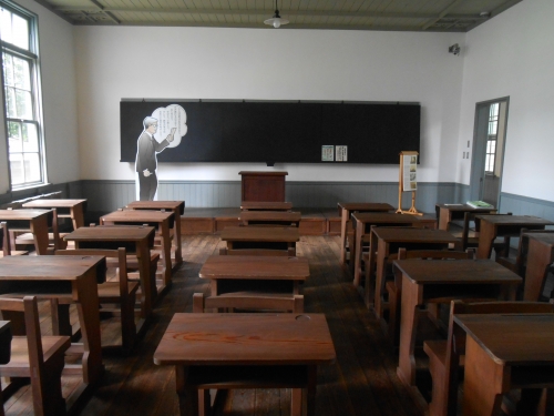 この校舎は、記念館を見学した後に見ることをおすすめします。そのほうが、より当時の授業の様子を想像できて面白いと思います。