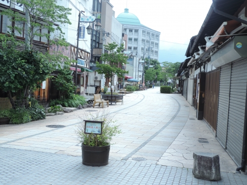 松本市内を流れる女鳥羽川沿いに小さな店舗が並び、食べ歩きなども楽しめるエリアです。四柱神社の表参道として発展した通りで、東西の入口にカエルの像がある事から、地元ではカエル通りとも呼ばれています。