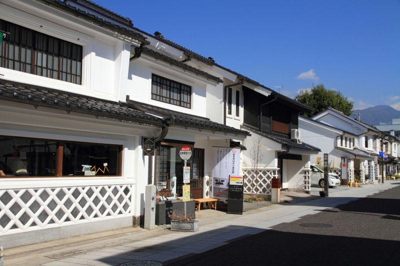 なわて通りと女鳥羽川を挟んで対岸にある中町通り。白壁と黒なまこ壁の土蔵が立ち並び、懐かしい風景が続きます。善光寺街道沿いにあるため、江戸の昔には酒造業や呉服業など数多くの問屋で賑わった通りとのこと。 現在では、民芸店やお洒落な工芸店、隠れ家的カフェなどが点在していて、観光がてら散策するのもおすすめです。