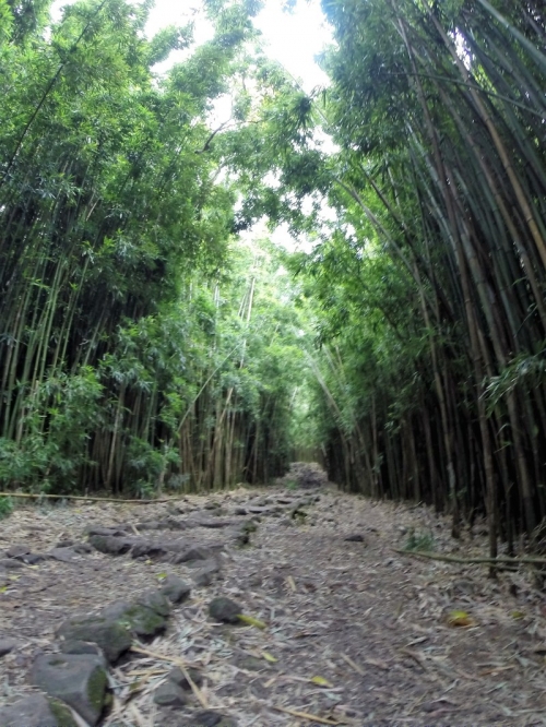 巨大なバニヤンツリーを通り過ぎたら、橋の先に見えてくるのはチャイニーズバンブーの群生林です。ハワイの南国な雰囲気から、一気にアジアンテイストになります。