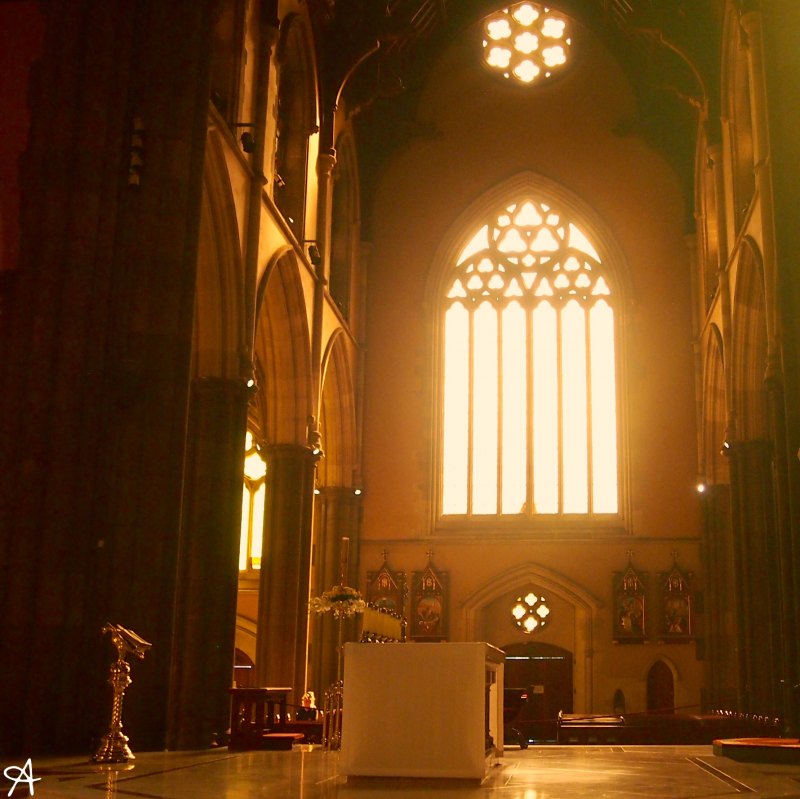 オーストラリア最大のゴシック建築です。背の高い3本の尖塔が外観の特徴ですが、内部はゴールドの神々しい光が美しいです。窓から差し込む光とパイプオルガンは写真映え間違いないです。