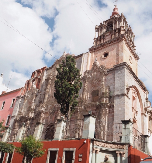 ラコンパニーア聖堂はピンク色の外壁が特徴的で、写真映え抜群の建物。フアレス通りと比較すると落ち着いたエリアで、ミュージアムが多く並ぶPositos通りを散策する際には見ておきたい場所です。お店は少なめですが、その分グアナフアトらしい写真を好きなように撮り放題!すぐ近くにあるグアナフアト大学も、教会かと思うくらい壮大で美しい建物なので必見です。