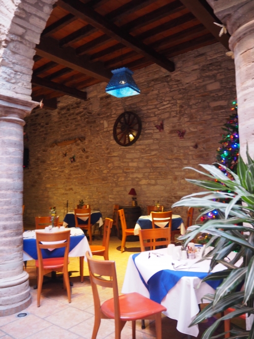 レストランはレンガ造りの高い天井のお部屋。しかも天井がガラスでおおわれているので、天気が良ければとっても素敵な自然光の中で朝食がいただけます。