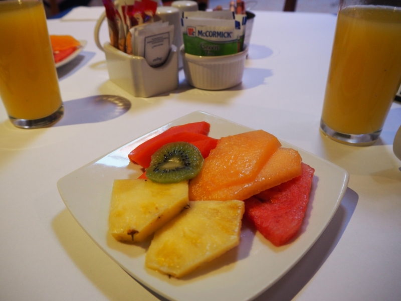 席に着くとまず出てくるのがフルーツとオレンジジュース。このオレンジジュースが搾りたてのフレッシュジュースでとてもおいしかったです。