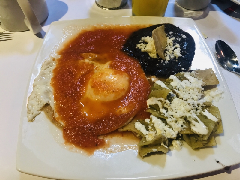 また卵料理だけでなく、トルティーヤチップスや黒い豆のペーストも一緒に盛られているのがいいですね。
