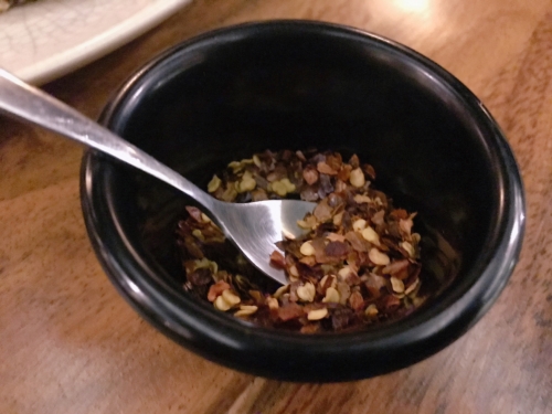 また、こちらの一品は、「FOCACCIA MADALENA」と言うメニューで、ピザパンのような物です。食べ応えがある品で、本窯を使用し本格的な仕上がり!トマトベースで日本人の味覚にも合う品です。また、セットで付いてくる唐辛子を使えば一層食欲そそられ、辛い物好きにはオススメです!!