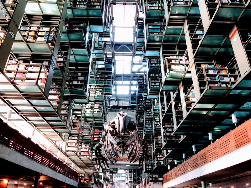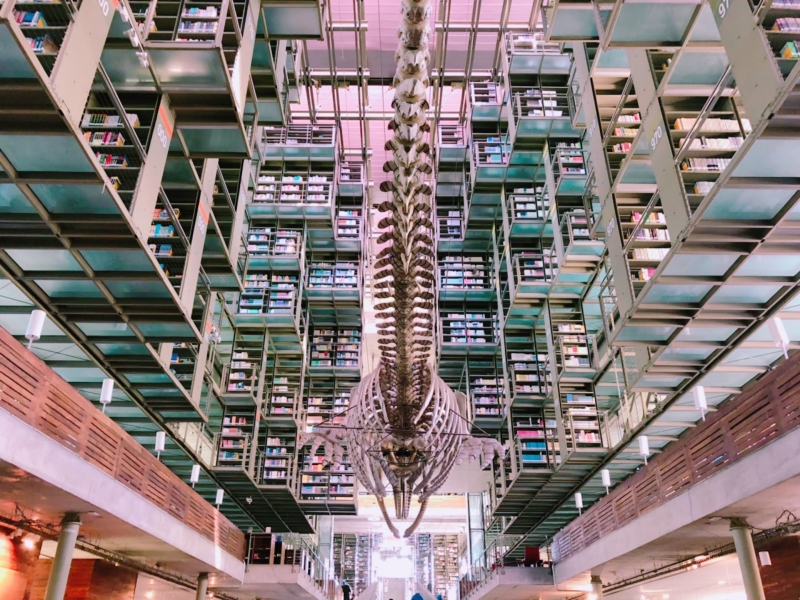 空中に浮いたような書庫がSF的で、トリップアドバイザーの「死ぬまでに行きたい世界の図書館15」に選ばれたほど。