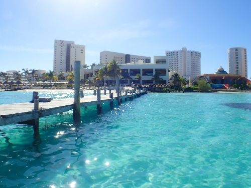 ボートに乗って左にダウンタウンを眺めながらイスラ・ムヘーレス島方向へ向かいます。この辺りのラグーンにはマナティもいるんだそう!ポイントまでは約30分で到着です。