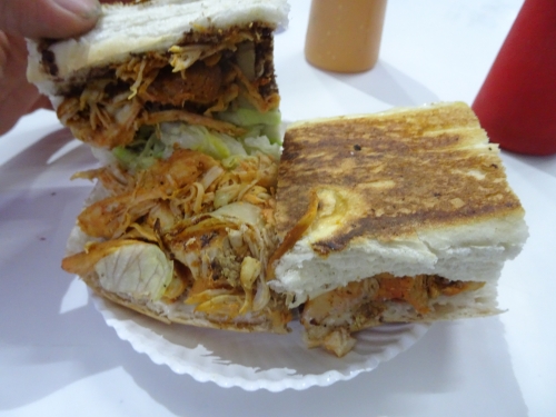 「Gordita」とは、スペイン語で「おデブちゃん」という意味になります。カロリーが高く「これを食べていると太る」という世にも恐ろしい食べ物です。ただ、困ってしまうのはこれが凄まじく旨いということ。厚めのトルティーヤをたっぷりの油を使って焼き、それをハンバーガーのバンズのようにして、間に細切れにしたチキン、レタス、チーズ、ペースト状の豆などを挟み込みんでいます。