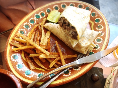 ここでは、ブリドーやタコスのような典型的なメキシコ料理に加え、セビーチェやビリヤ(羊肉の煮込み)のような伝統的な料理も提供しています。
