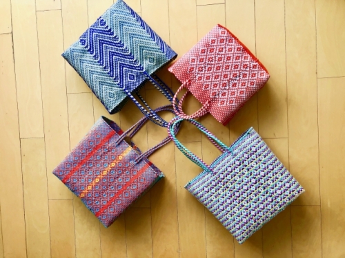 近年は夏になると日本の雑貨屋などでも見かけるようになったメルカドバック。メキシコでは普通にマーケットにお買い物へ行くお母さんたちが使っている光景を目にします。