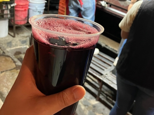 マーケットや屋台でよく目にする大きな入れ物に入った色の濃い冷たい飲み物。いったい何なのだろうと思ってなかなか手が出ないが、メキシコの国民的ドリンクで果汁を使ったナチュラルジュースのアグア・フレスカ(Agua Fresca)です。スペイン語でアグアと言えば一般的に「水」を指しますが、メキシコではこうした自家製のフルーツ水のことも指しています。