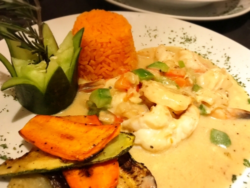 テキーラを使った海老の焼き物は、目の前で調理してくれる人気のメニューです。料理過程でテキーラに火をつけるので、炎のパフォーマンスを楽しめ、クリーミーなソースがかかったプリプリの海老をいただけます。またガーリックもたっぷり使用されているので、食欲をそそる一品になっています。