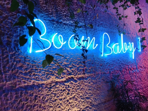 フォトスポットは2階にあり、記念撮影にピッタリ!ネオン仕様になっているので、夜になると素敵な写真を残せます。