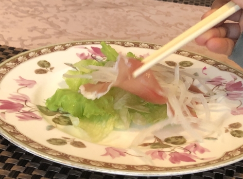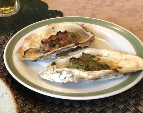 冷たいオードブルは 生ハム 、温かいオードブルは 洋風焼き牡蠣 。季節によって変わると思います。牡蠣もこの界隈での海の幸です。
