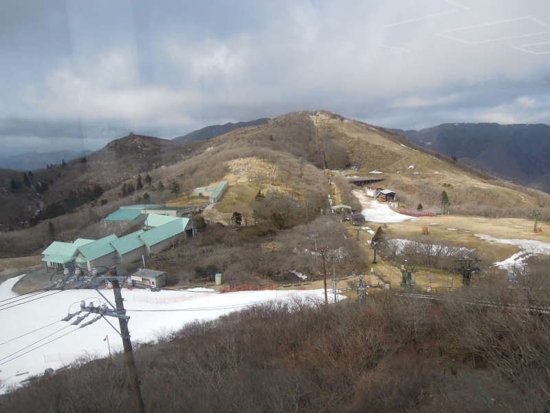標高約400メートルのロープウェイ湯の山温泉駅でチケットを買い求めて乗車すると、徐々に麓の街が小さく見えるようになります。美しい山々を眺めていると、途中に白く塗装された大きな鉄塔が見えてきます。これは、標高943メートル地点に建つロープウェイの支柱で、高さは61メートルもあり、全国のロープウェイの中で最も高いそうです。