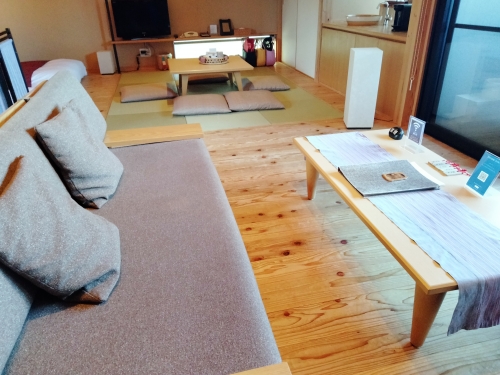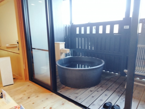 床には熊野杉が使用されて、木の温もりも感じられます。お部屋のタイプによっては露天風呂も付いています。さらに、アメニティはロクシタンで統一されており、特に女性は気分が上がること間違いなし!