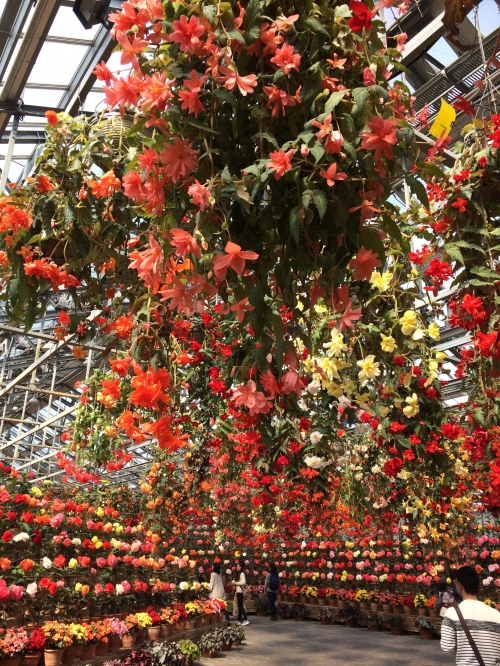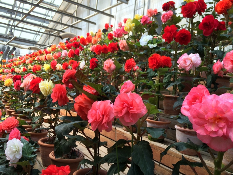 この温室は、高温多湿を嫌うベゴニアの栽培のために、最新の設備を用いて完璧な環境を維持しているそうです。ひとつのお花の寿命はたった7日~10日間しかなく、繊細なお手入れを必要とするベゴニアですが、ここへ来ればいつでも満開で見ることができます!!