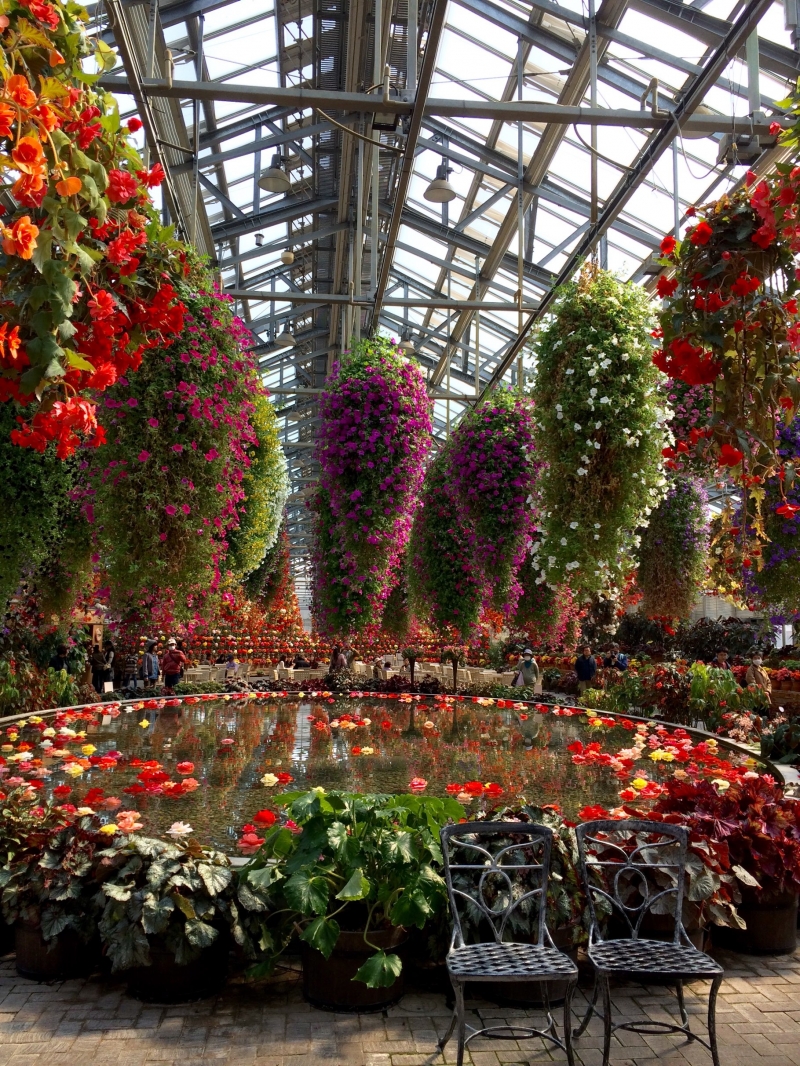 またベゴニアガーデンの最後に見られる美景がこちら!池に贅沢に浮かべられたベゴニアの可愛さと、水面に映った空間の美しさに圧倒されること間違いなし。また、池のほとりには二脚のオシャレな椅子がありますので、ラブラブなお二人はここで写真を撮ることをお忘れなく♡