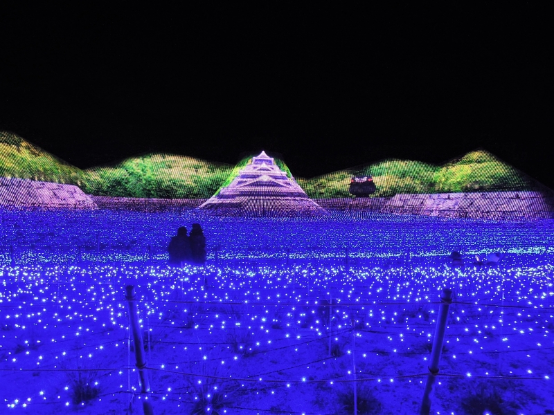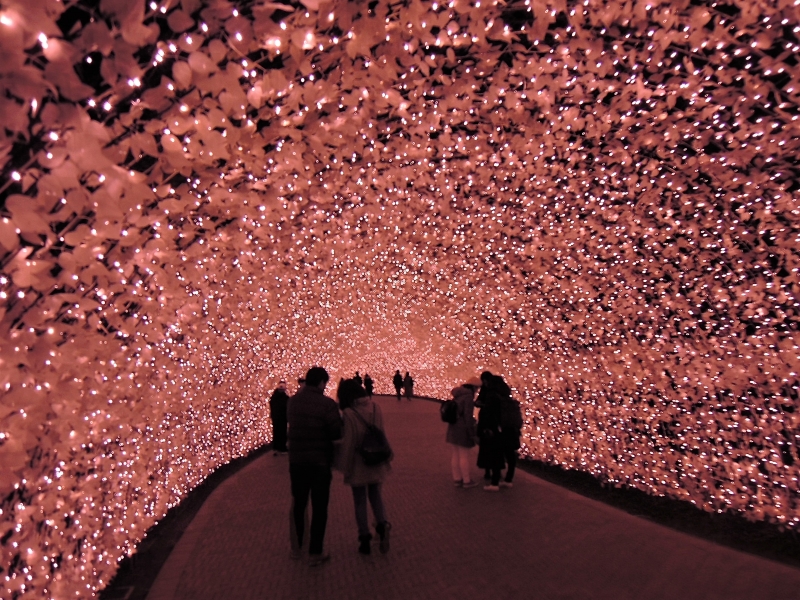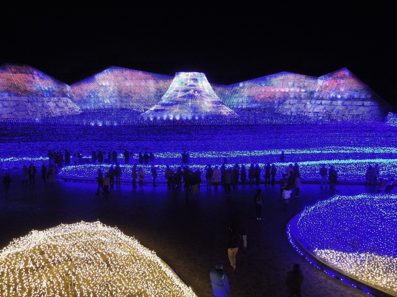 なばなの里イルミネーションは、毎年10月から翌年6月頃にかけて、三重県桑名市にある総合リゾートエリア「ナガシマリゾート」内の植物園「なばなの里」で開催されるイベントです。面積約43,000平方メートルの花園「花ひろば」などがある広大な敷地では、LED電球だけで装飾された灯りが美しく煌めき、その規模は国内最大級とも言われています。