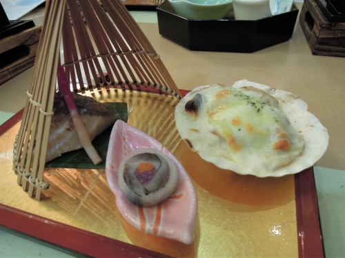 料理は地産地消や旬の食材にこだわっています。前菜では桑名市の特産品「なばな」を使ったおひたしなども登場します。