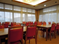 写真:ゆきたか |  写真:ゆきたか 色の変化が楽しめる100メートルの光のトンネル。 |  写真:ゆきたか テーブル席のレストラン。夕食・朝食はこちらで提供される。 |