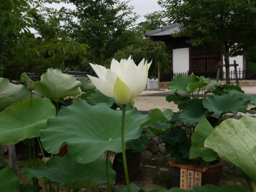 境内の如来堂、御影堂付近には、100鉢以上の蓮鉢が飾られており、夏になると美しい花を咲かせます。蓮には様々な品種がありますが、こちらには35種類もあるそうです。