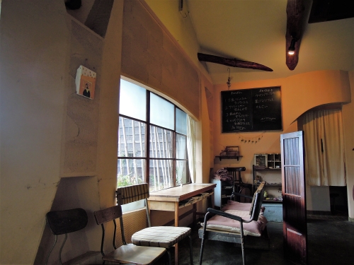 建物は古く、和風の雰囲気も漂っていますが、中に入るとおしゃれな空間が迎えてくれます。レトロなソファやテーブルが並び、窓からは柔らかな光が差しこみます。
