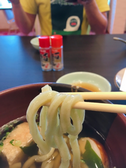 写真は一番おすすめの、真菰(まこも)うどん(天ぷら)定食です。真菰というのはイネ科の植物で、昔からこの菰野近辺でよく採れるんだとか。この真菰を使用したこちらのうどんは真菰の色をしていて、風味良くツルッとした食感が最高!お出汁もきいたうどんつゆも、とっても美味!関西に近づいてるな、と思わせる一品です。