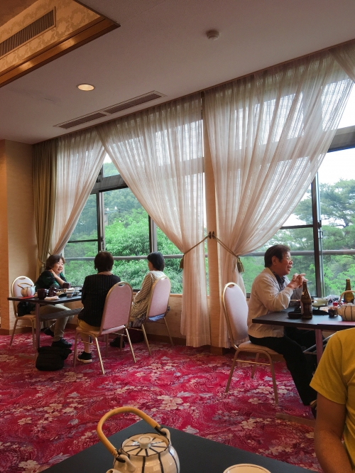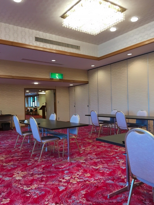 食事会場は、宴会場と間仕切り一枚挟んだ、広間です。場合によっては隣の会場で大規模な宴会が行われていて、賑やかなこともあります。(赤ちゃんは落ち着かないかもしれません。)グリーンホテルは三重県内随一の温泉付き宴会場・同窓会会場としても人気があるようです。