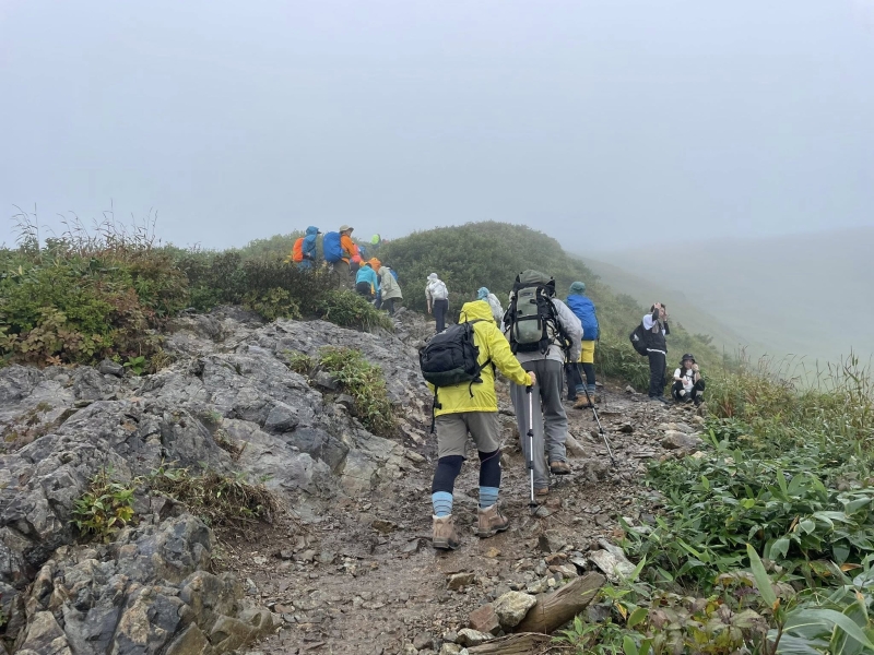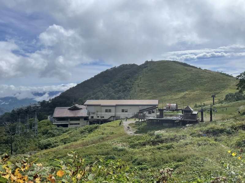 お天気がいい日には眼下に天神平が広がって美しい稜線も見えるそうですが、この日は生憎の雨でした。