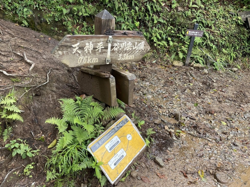 木道や岩の道を歩いて行くと、天神平から約600mで天神峠の分岐につきます。